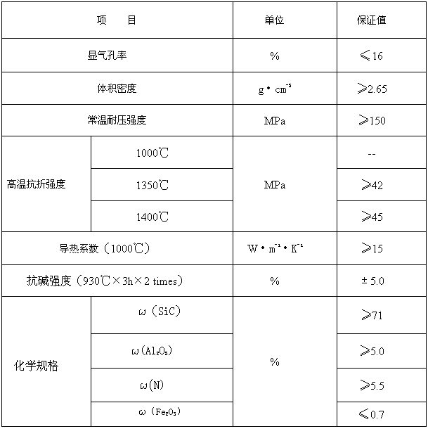 氮化硅结合碳化硅制品理化指标